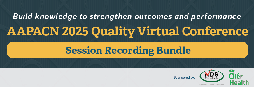 Experience the education from the AAPACN 2025 Quality Virtual Conference in a recorded bundle packaged for on-demand learning. Purchase the full three-day bundle, packed with all 12 education sessions and three panel discussions featuring MDS and quality subject-matter experts. Or select an individual track – novice, intermediate, or expert – featuring four education sessions and one panel discussion from that individual day. All session recordings are a compilation of voice over PowerPoint and audio recordings from the live virtual event, plus any Q&A that followed – all accessible in your AAPACN Learner Dashboard for up to one year.