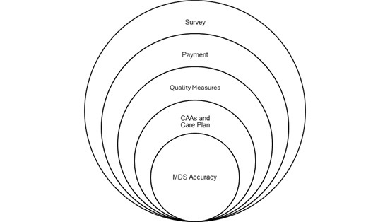 “The MDS is the story of the resident’s life,” explains McCarley. “With the revisions to the surveyor guidance in Appendix PP of the State Operations Manual that are currently slated for implementation in the survey process on March 24, 2025, the Centers for Medicare & Medicaid Services (CMS) is driving home just how important that story is. CMS is more clearly tying MDS accuracy together with the care area assessments (CAAs), the care plan, and the care that each resident actually receives on the floor.”