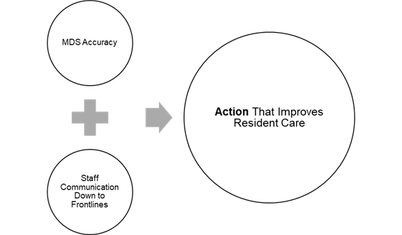 IDT collaboration is an important component of expanding MDS impacts, says McCarley. “Within that IDT collaboration, there must be a process in place for communicating information all the way down to frontline staff—beyond department heads—when an issue is identified during resident interviews or data collection.”